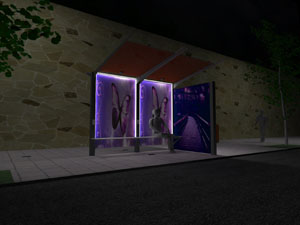 在圍牆或堤防的使用上,將薄膜太陽能板以裝飾的方式帶入設計中,所儲存的電能透過自動系統的控制,用於夜間的景觀照明,因與市電隔離使用,在系統的組裝與維護上更為單純與方便。